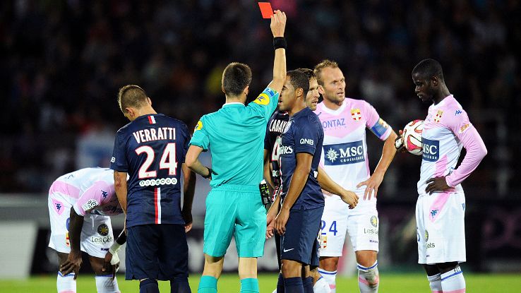 PSG's Yohan Cabaye is given his marching orders.